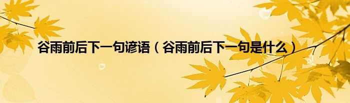 以上就是【谷雨前后下一句谚语,谷雨前后下一句是什么】相关内容。