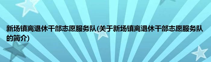 本文关于新场镇离退休干部志愿服务队的简介就讲解完毕,希望对大家有所帮助。