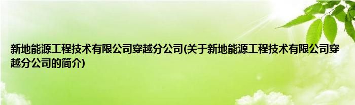 本文关于新地能源工程技术有限公司穿越分公司的简介就讲解完毕,希望对大家有所帮助。