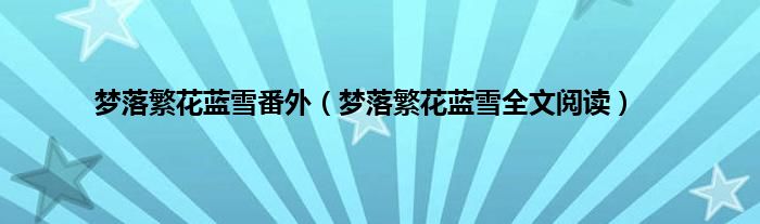 大家好,小问来为大家解答以上问题。梦落繁花蓝雪番外,梦落繁花蓝雪全文阅读这个很多人还不知道,现在让我们一起来看看吧!