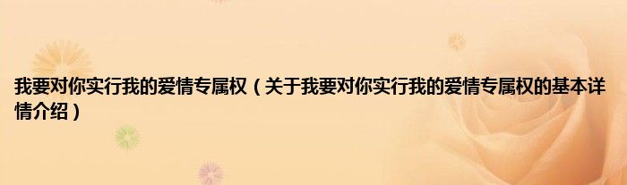 本文关于我要对你实行我的爱情专属权的基本详情介绍就讲解完毕,希望对大家有所帮助。