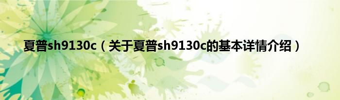 本文关于夏普sh9130c的基本详情介绍就讲解完毕,希望对大家有所帮助。