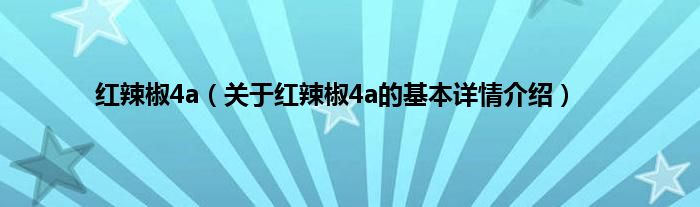 大家好我是小蝌蚪,红辣椒4a,关于红辣椒4a的基本详情介绍很多人还不知道,那么现在让我们一起来看看吧!