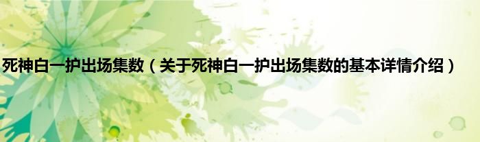 本文关于死神白一护出场集数的基本详情介绍就讲解完毕,希望对大家有所帮助。