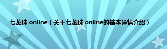 本文关于七龙珠 online的基本详情介绍就讲解完毕,希望对大家有所帮助。
