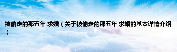 大家好我是小蝌蚪,被偷走的那五年 求婚,关于被偷走的那五年 求婚的基本详情介绍很多人还不知道,那么现在让我们一起来看看吧!