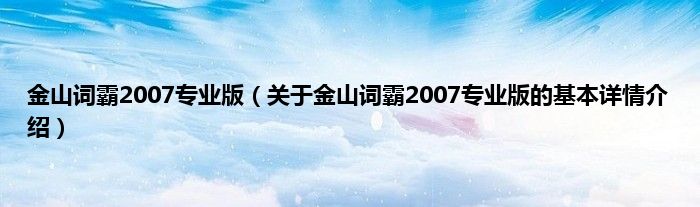 本文关于金山词霸2007专业版的基本详情介绍就讲解完毕,希望对大家有所帮助。
