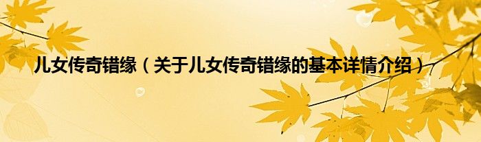 本文关于儿女传奇错缘的基本详情介绍就讲解完毕,希望对大家有所帮助。