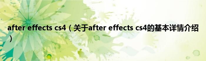 本文关于after effects cs4的基本详情介绍就讲解完毕,希望对大家有所帮助。