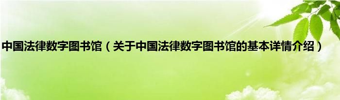 本文关于中国法律数字图书馆的基本详情介绍就讲解完毕,希望对大家有所帮助。