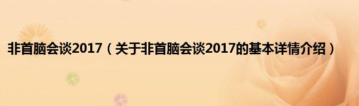 大家好我是小蝌蚪,非首脑会谈2017,关于非首脑会谈2017的基本详情介绍很多人还不知道,那么现在让我们一起来看看吧!