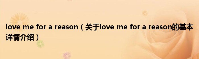 本文关于love me for a reason的基本详情介绍就讲解完毕,希望对大家有所帮助。