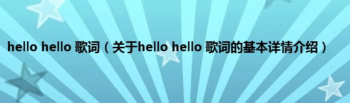 本文关于hello hello 歌词的基本详情介绍就讲解完毕,希望对大家有所帮助。