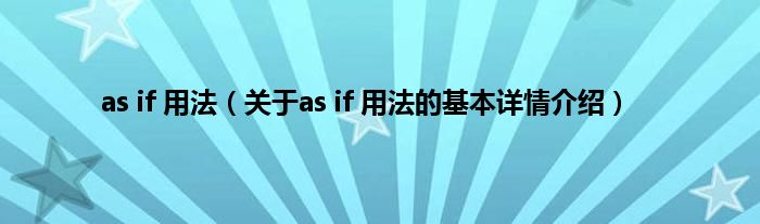 本文关于as if 用法的基本详情介绍就讲解完毕,希望对大家有所帮助。