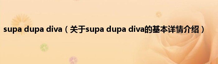 本文关于supa dupa diva的基本详情介绍就讲解完毕,希望对大家有所帮助。