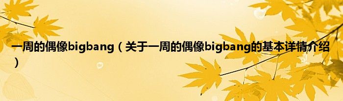本文关于一周的偶像bigbang的基本详情介绍就讲解完毕,希望对大家有所帮助。