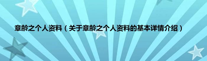 本文关于章龄之个人资料的基本详情介绍就讲解完毕,希望对大家有所帮助。