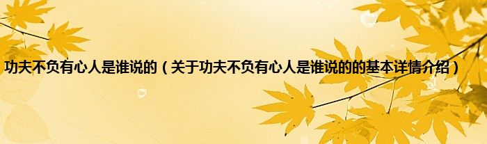 本文关于功夫不负有心人是谁说的的基本详情介绍就讲解完毕,希望对大家有所帮助。