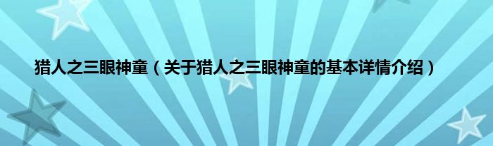 大家好我是小蝌蚪,猎人之三眼神童,关于猎人之三眼神童的基本详情介绍很多人还不知道,那么现在让我们一起来看看吧!