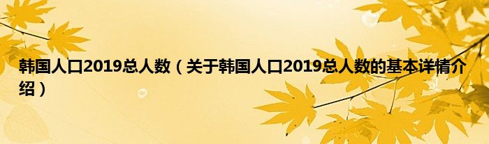 本文关于韩国人口2019总人数的基本详情介绍就讲解完毕,希望对大家有所帮助。