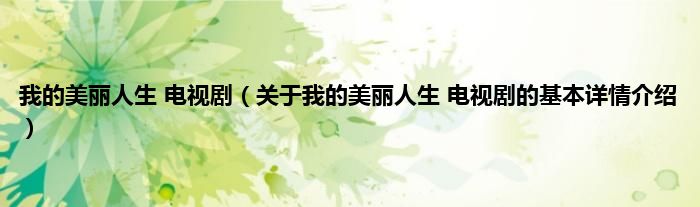 本文关于我的美丽人生 电视剧的基本详情介绍就讲解完毕,希望对大家有所帮助。