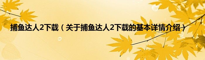 本文关于捕鱼达人2下载的基本详情介绍就讲解完毕,希望对大家有所帮助。