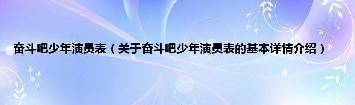 本文关于奋斗吧少年演员表的基本详情介绍就讲解完毕,希望对大家有所帮助。