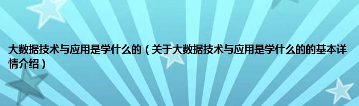 本文关于大数据技术与应用是学什么的的基本详情介绍就讲解完毕,希望对大家有所帮助。