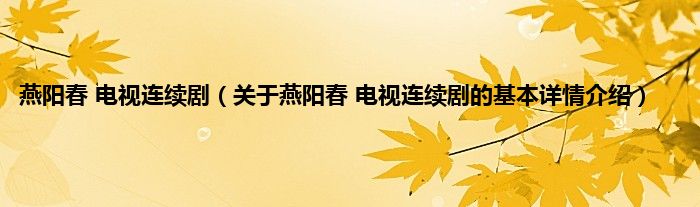 本文关于燕阳春 电视连续剧的基本详情介绍就讲解完毕,希望对大家有所帮助。