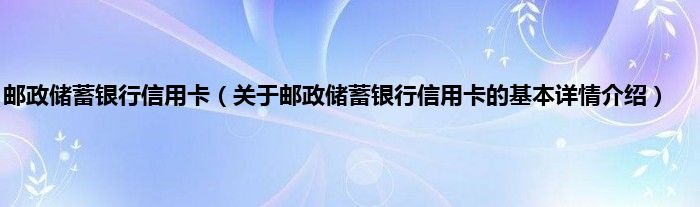 本文关于邮政储蓄银行信用卡的基本详情介绍就讲解完毕,希望对大家有所帮助。