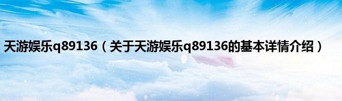 本文关于天游娱乐q89136的基本详情介绍就讲解完毕,希望对大家有所帮助。