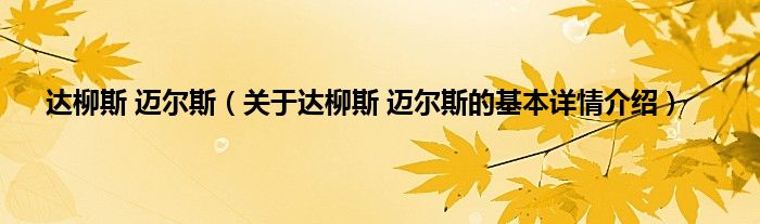 大家好我是小蝌蚪,达柳斯 迈尔斯,关于达柳斯 迈尔斯的基本详情介绍很多人还不知道,那么现在让我们一起来看看吧!