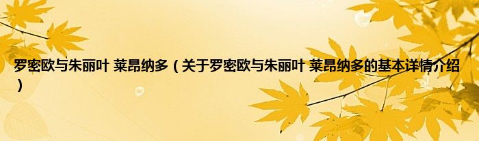 大家好我是小蝌蚪,罗密欧与朱丽叶 莱昂纳多,关于罗密欧与朱丽叶 莱昂纳多的基本详情介绍很多人还不知道,那么现在让我们一起来看看吧!