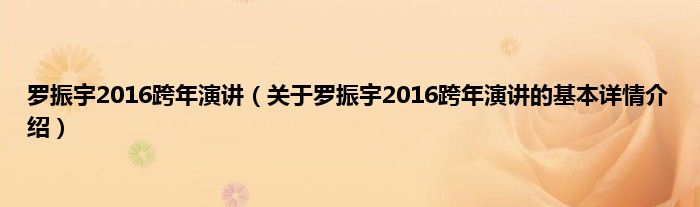 本文关于罗振宇2016跨年演讲的基本详情介绍就讲解完毕,希望对大家有所帮助。