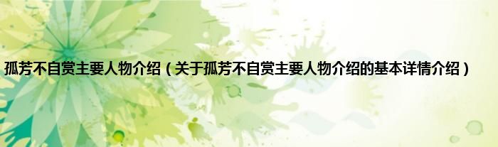 本文关于孤芳不自赏主要人物介绍的基本详情介绍就讲解完毕,希望对大家有所帮助。