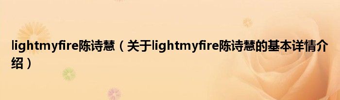 lightmyfire陈诗慧(关于lightmyfire陈诗慧的基本详情介绍)