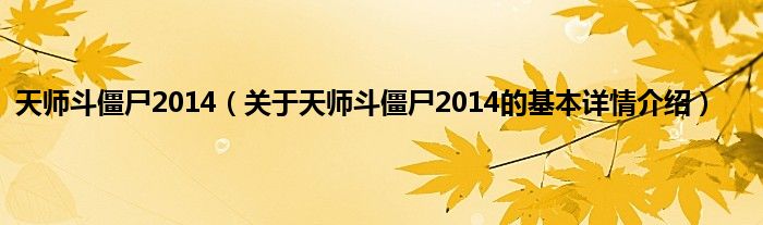 本文关于天师斗僵尸2014的基本详情介绍就讲解完毕,希望对大家有所帮助。