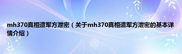 本文关于mh370真相遭军方泄密的基本详情介绍就讲解完毕,希望对大家有所帮助。