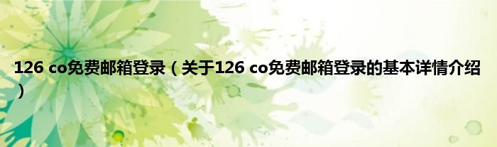 126 co免费邮箱登录(关于126 co免费邮箱登录的基本详情介绍)