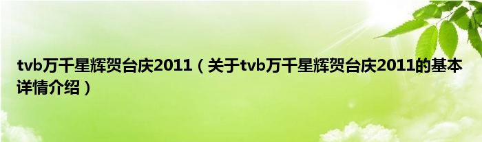 本文关于tvb万千星辉贺台庆2011的基本详情介绍就讲解完毕,希望对大家有所帮助。