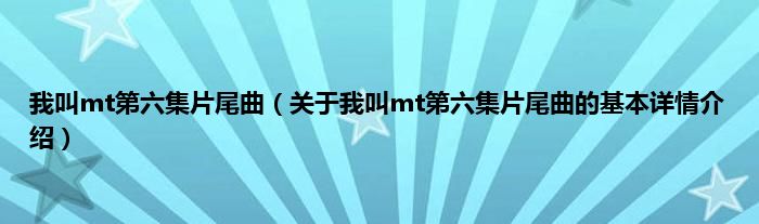 本文关于我叫mt第六集片尾曲的基本详情介绍就讲解完毕,希望对大家有所帮助。