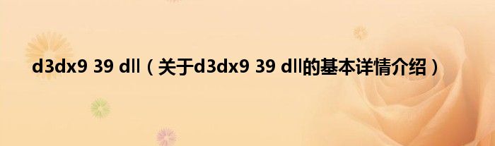 本文关于d3dx9 39 dll的基本详情介绍就讲解完毕,希望对大家有所帮助。