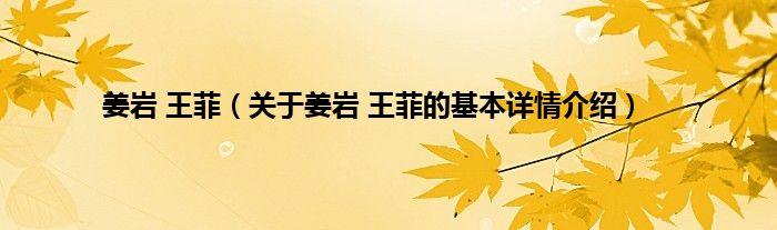 本文关于姜岩 王菲的基本详情介绍就讲解完毕,希望对大家有所帮助。