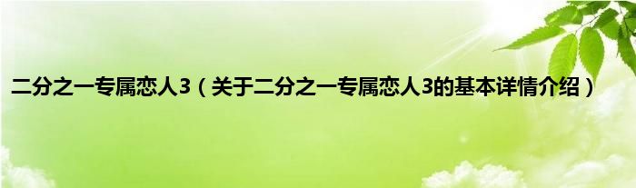 本文关于二分之一专属恋人3的基本详情介绍就讲解完毕,希望对大家有所帮助。