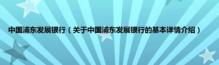 本文关于中国浦东发展银行的基本详情介绍就讲解完毕,希望对大家有所帮助。
