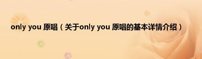 本文关于only you 原唱的基本详情介绍就讲解完毕,希望对大家有所帮助。