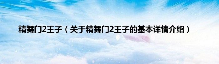 本文关于精舞门2王子的基本详情介绍就讲解完毕,希望对大家有所帮助。