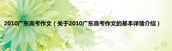 本文关于2010广东高考作文的基本详情介绍就讲解完毕,希望对大家有所帮助。