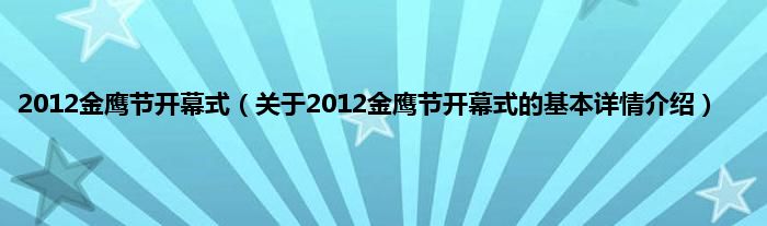 2012金鹰节开幕式(关于2012金鹰节开幕式的基本详情介绍)