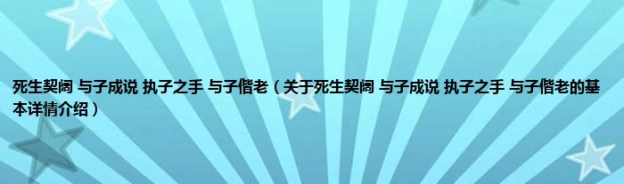 本文关于死生契阔 与子成说 执子之手 与子偕老的基本详情介绍就讲解完毕,希望对大家有所帮助。